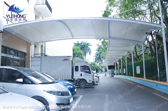 學(xué)校膜結(jié)構(gòu)遮陽(yáng)棚,能突顯出學(xué)校新型建筑方面的魅力,造型新穎美觀,是學(xué)校里就是一道漂亮的景觀,還能是學(xué)校的門(mén)廊遮陽(yáng)棚。這次的執(zhí)信中學(xué)案例中,以學(xué)校大門(mén)下實(shí)際所需,安裝上遮陽(yáng)棚是為了能連接于學(xué)校樓,這樣方便了出入,不僅能為學(xué)校學(xué)生遮陽(yáng)遮雨出入。能彰顯出了它本身在學(xué)校的大大實(shí)用性。