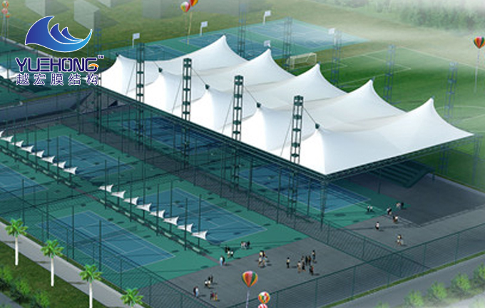 膜結構廠家服務體育設施范圍包括:體育場看臺、網球場、籃球場、高爾夫球場、游泳館等等。各種運動場館都能搭建膜結構遮陽棚,其造型個性化,能承受一定荷載的空間結構形式,制作簡易、安裝快捷的特點,是現代化體育設施建筑理念。